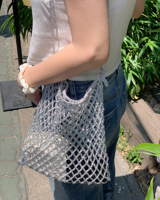 メタリックプレーコードネットバッグ(編み図のみ)- JAPANESE ver.