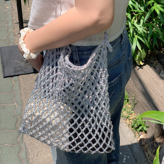 メタリックプレーコードネットバッグ(編み図のみ)- JAPANESE ver.