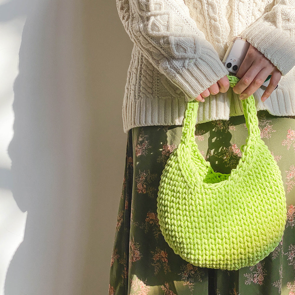 (完成したバッグのサイズと使用した糸の重さは、テンションに応じて異なる場合があります)