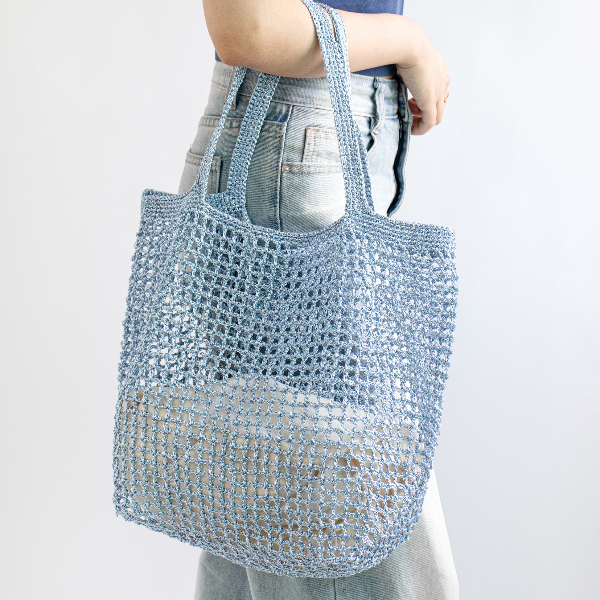 (完成したバッグのサイズと使用した糸の重さは、テンションに応じて異なる場合があります)
