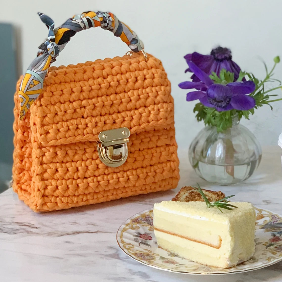 The pattern is written in US crochet terminology, and the finished dimensions are 7.2"(18cm)width X 2.8"(7cm)deep X 6"(15cm)tall. Renaissance yarn is used for this sample bag design. The printable PDF is a total of 2 pages of written and drawing patterns. PDF is in ENGLISH ONLY!