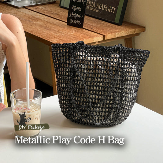 メタリックプレーコードネットバッグ(編み図のみ)- JAPANESE ver.