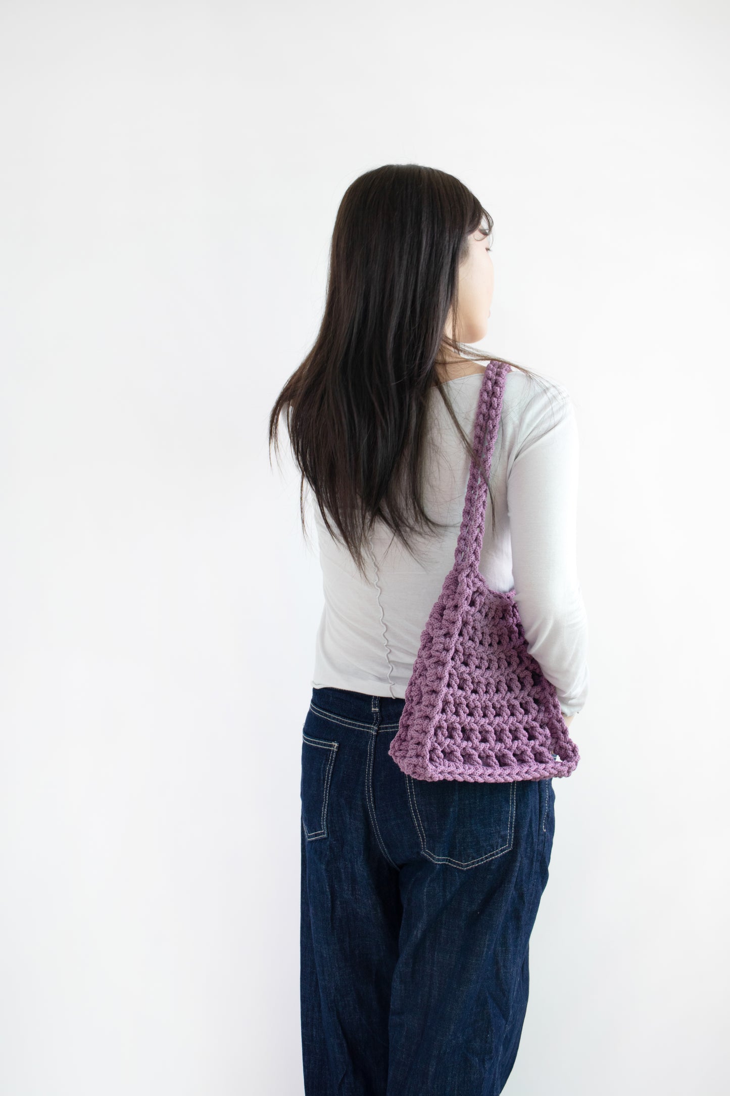 You can make it with a thick strong yarn and a tapestry needle in a short period of time. It has great durability so the shape stands well even when you put heavy stuff in your bag.